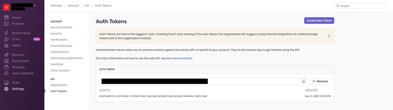 https://sentry.iofor Sentry cloud, or your self-hosted URL - Auth token — the token you copied in step 1